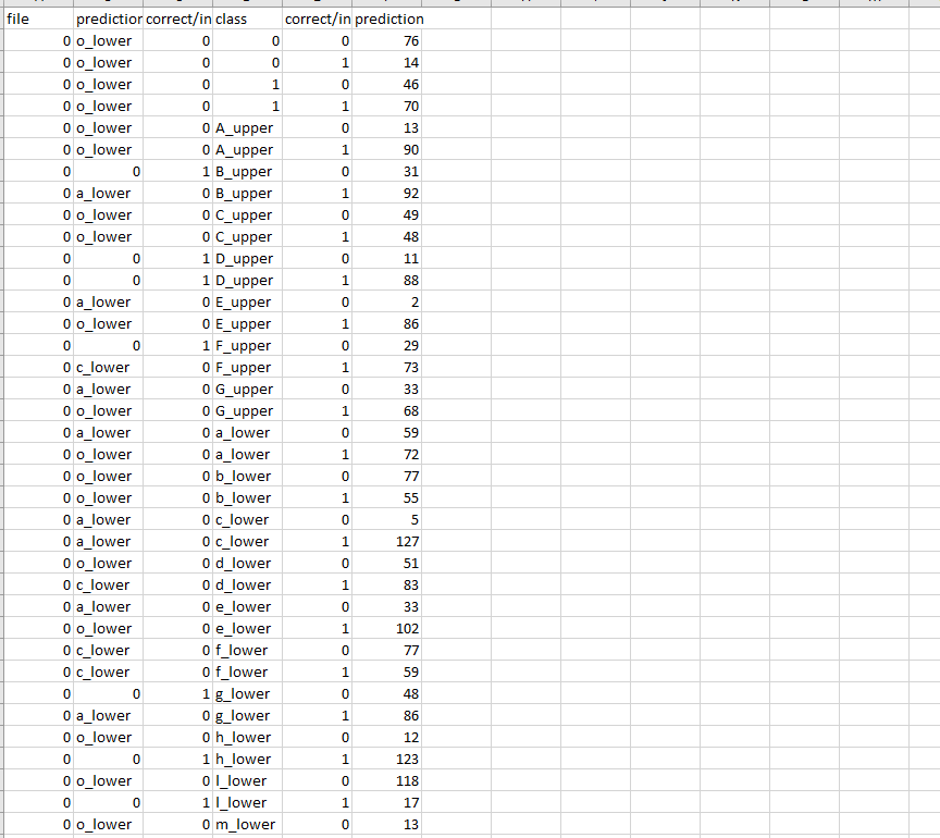 This function tests a model given labels and testing data. It then compiles the results in a CSV file, and groups the results by class, and by correct and incorrect.