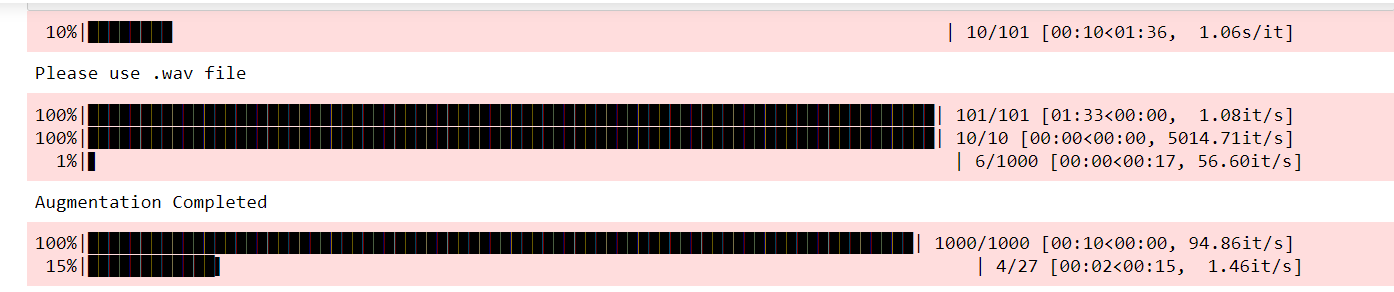 For augumenting the single file augumentOneFile which take audio file path, output path, by default it augument one file 10 time by shifing, adding noise, changing pitch and streching. We can Off any one this functionality by making it False.