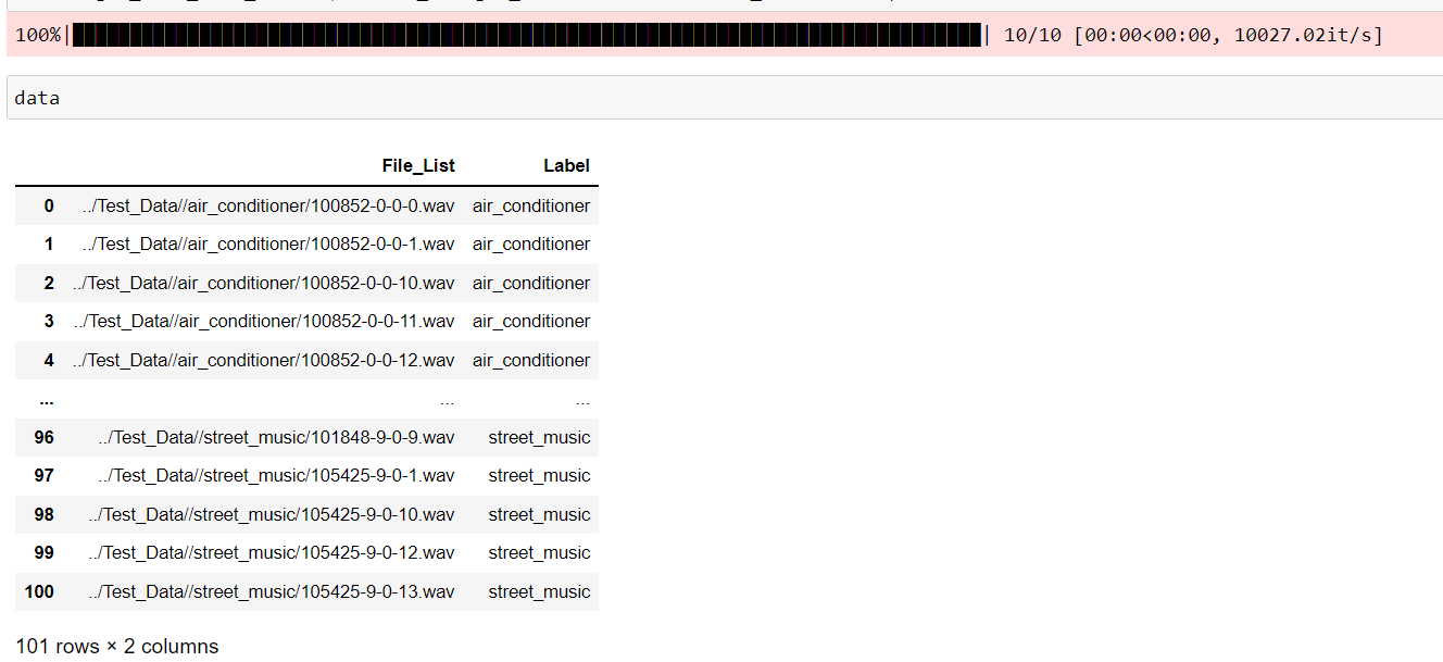 For loading the data from the folder gen_data_from_folder which takes the input the folder containing the different classes of the audio file in different folders in a sinlge folder and it returns the dataframe tha path of the each and every file with there label.