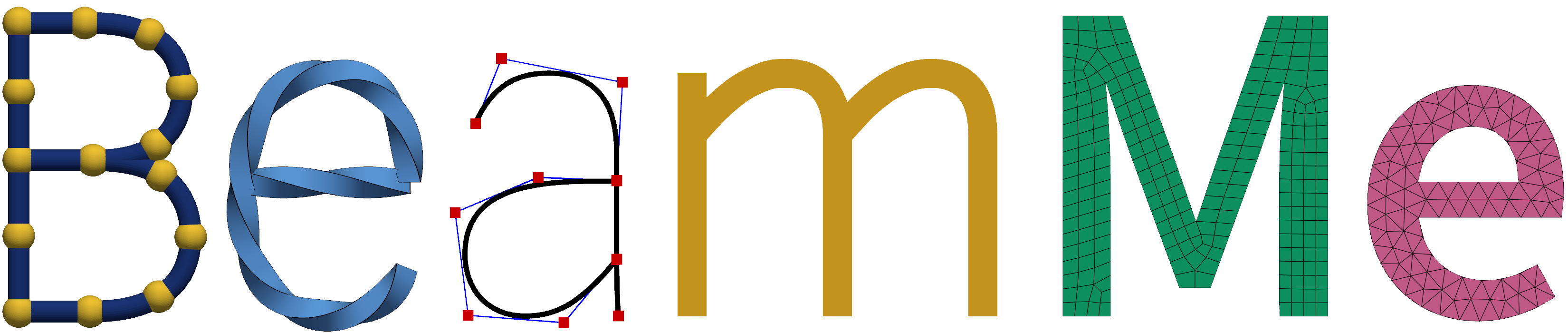 BeamMe (previously MeshPy) is a general purpose 3D beam finite element input generator written in Python. It contains advanced geometry creation and manipulation functions to create complex beam geometries, including a consistent handling of finite rotations. It can be used to create input files for the following finite element solvers (adaption to other solvers is easily possibly):