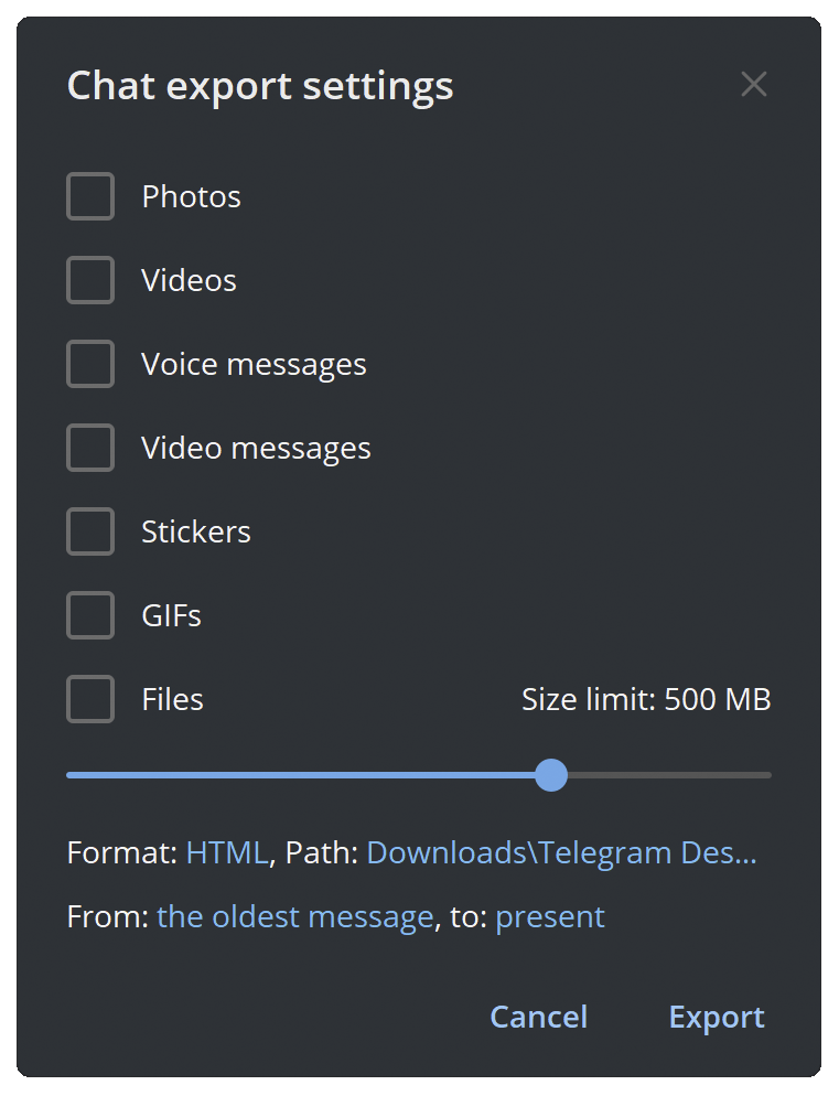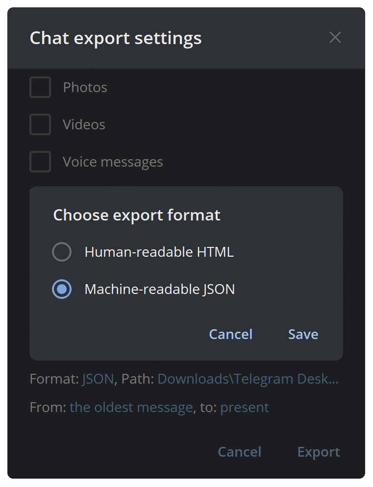 Preparing Telegram chat history files