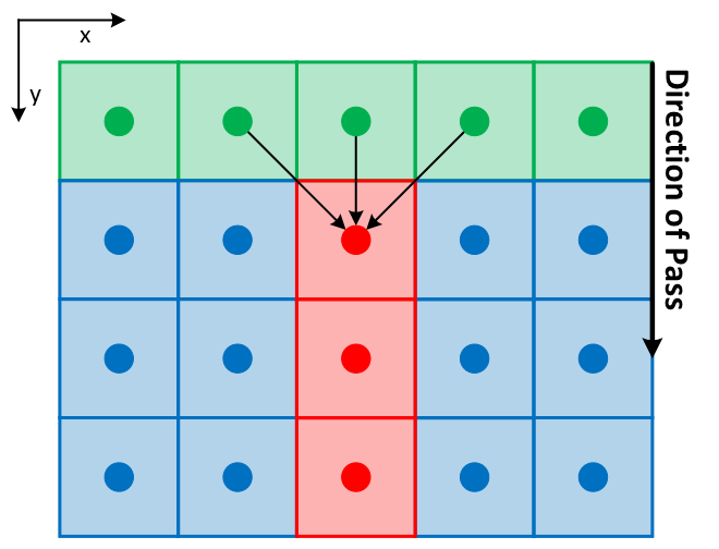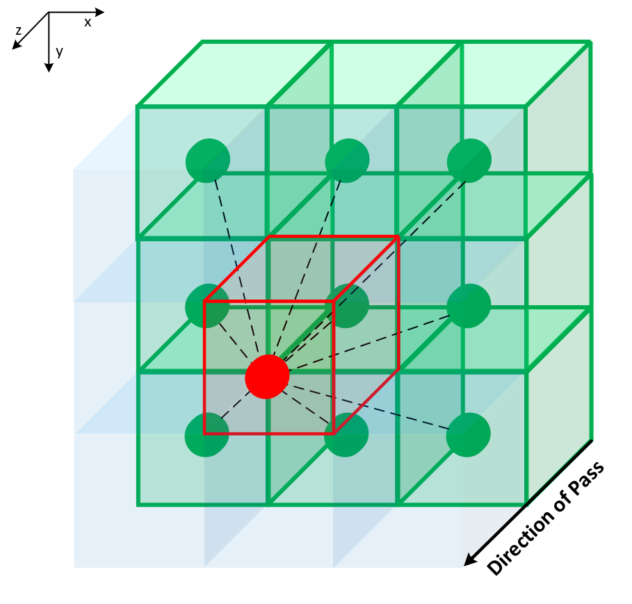 | 2D images, 1 of 4 passes | 3D volumes, 1 of 6 passes |