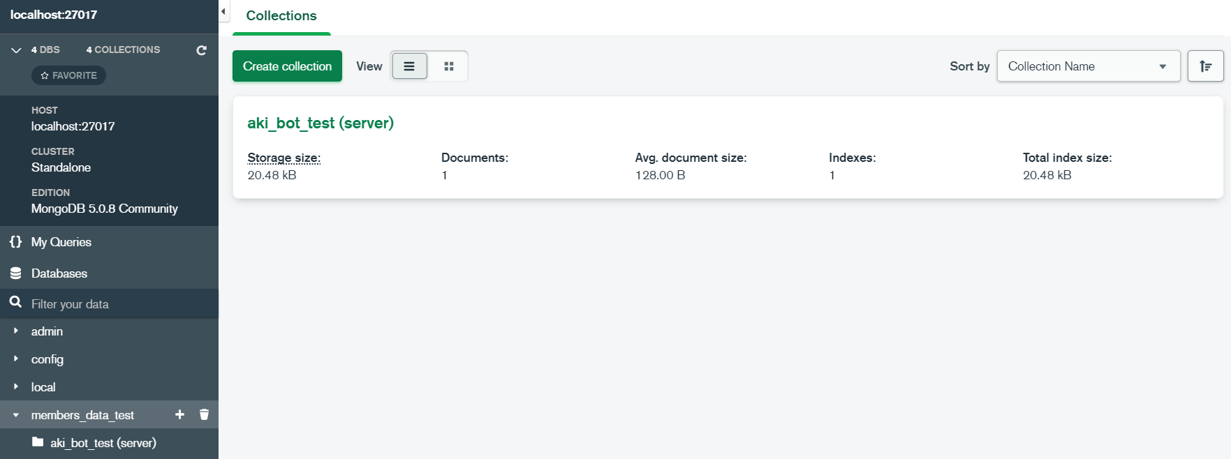 Now you should see a folder being created for your guild and also a database folder in your MongoDB database.