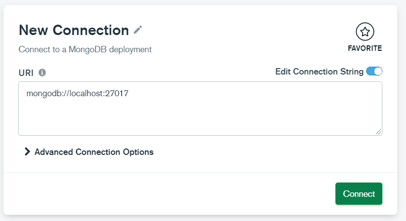 After finishing the install progress the MongoDB compass should open, copy the local host url and click connect. You'll need the url later!