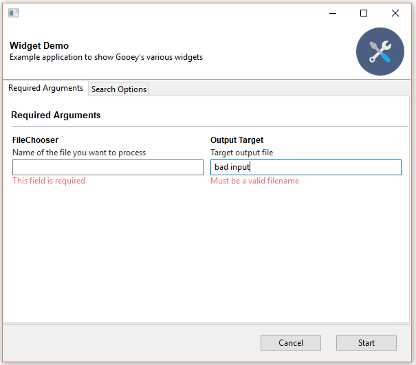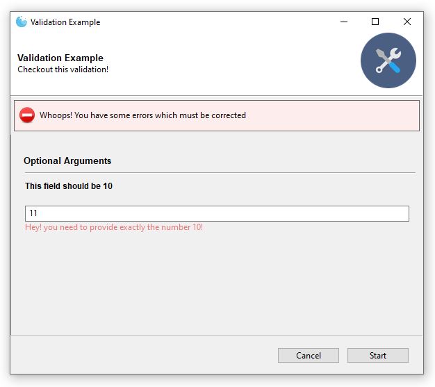 @Gooey(program_name='Validation Example', use_events=[Events.VALIDATE_FORM])