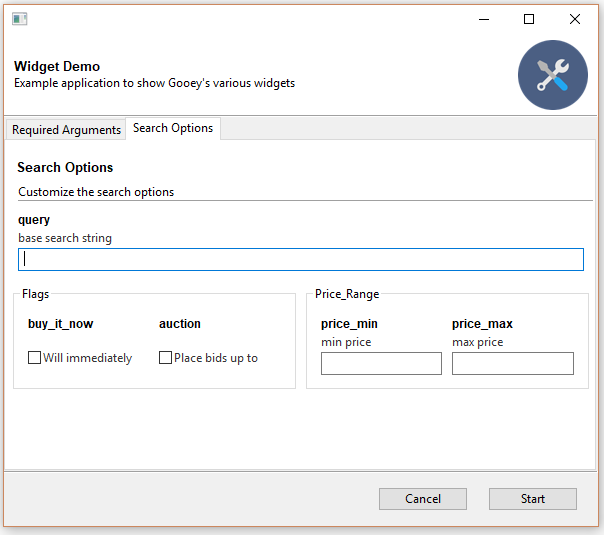 @Gooey(advanced=Boolean, # toggle whether to show advanced config or not