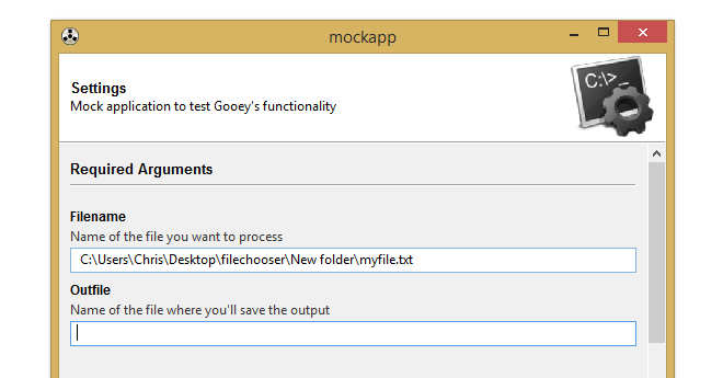 However, by dropping in GooeyParser and supplying a widget name, you can display a much more user friendly FileChooser