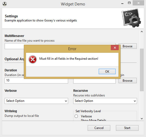 Now, when you run Gooey, before it invokes your main program, it'll send a separate pre-validation check and record any issues raised from your type functions.