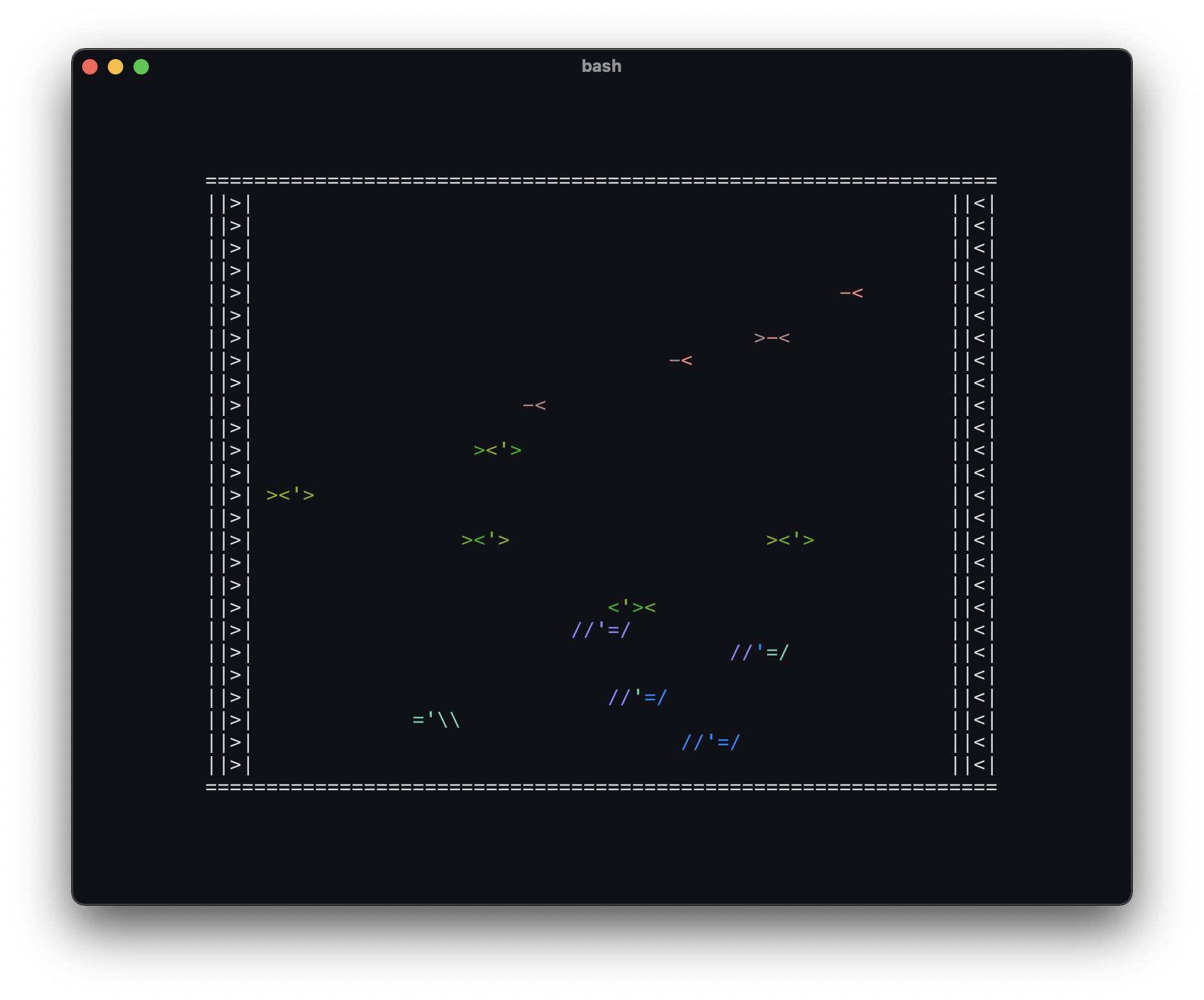 As mentioned above, the ptg CLI tool is a great example for both the capabilities of the library and how to make use of it. It also provides some simpler helpers, such as --size to retrieve your terminal dimensions, and the --file argument which allows you to load and play around with a PTG YAML file.