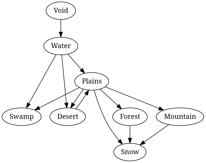 - Void. The cells that fill up the inital map before the start of the generation and are not assigned any biome-specific type belong to the type void. Void cells do not have any submissive types, meaning they do not 'infect' its neighbouring cells. Void cells are consumable only by water cells.