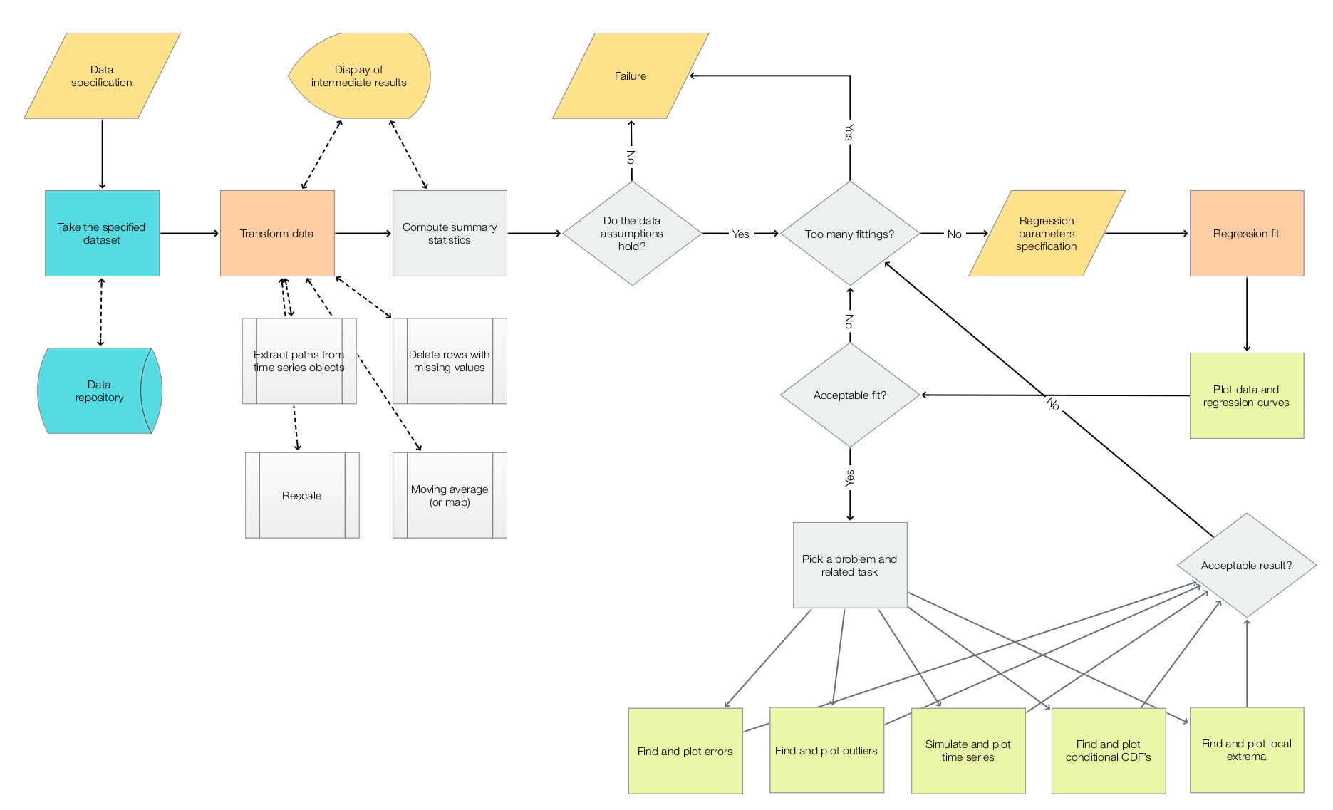 The following flowchart summarizes the workflows that are supported by Regressionizer: