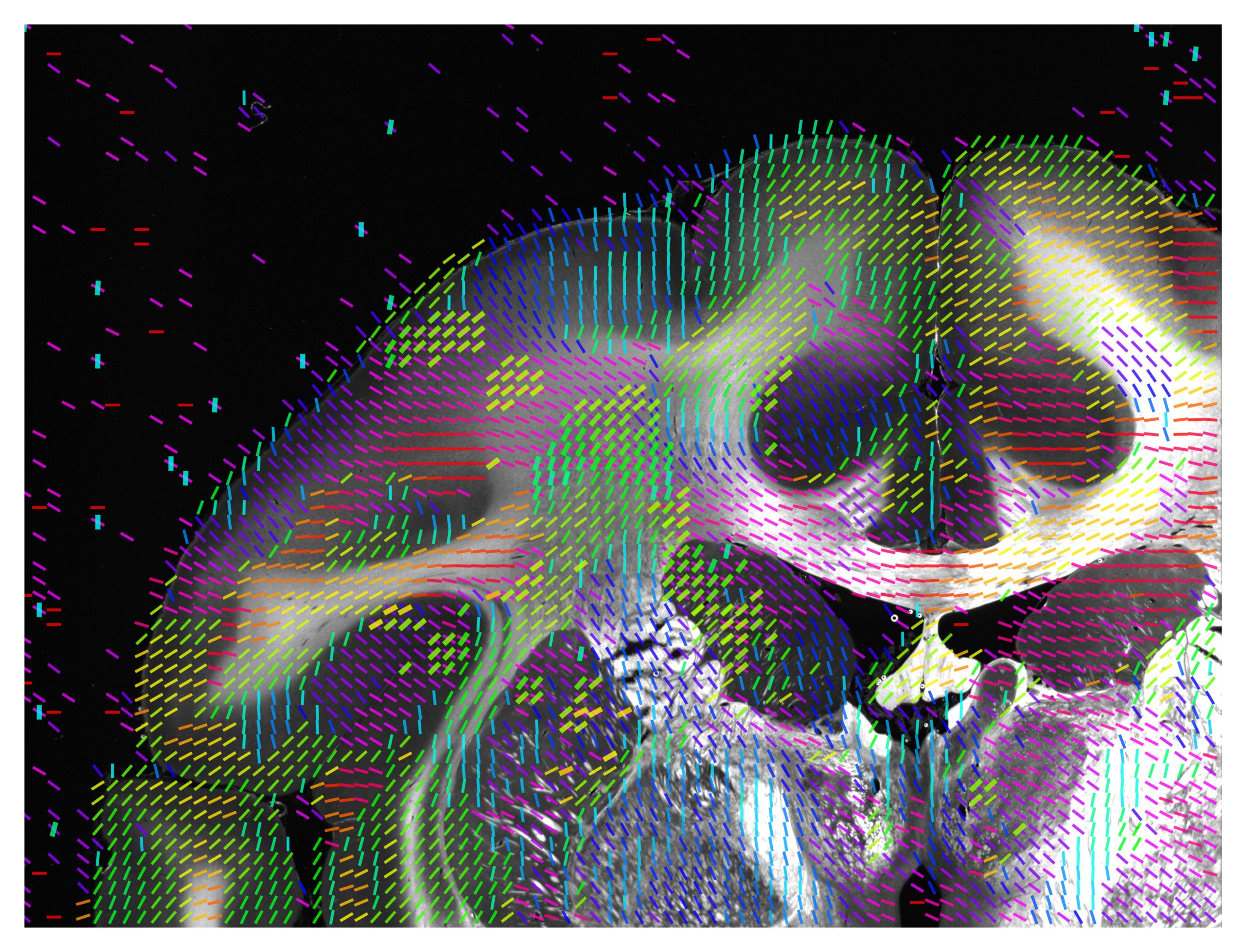 For example, it allows to display the generated parameter maps in different colors, and to show the orientations of (crossing) nerve fibers as colored lines (vector maps) by computing unit vector maps from the direction maps.