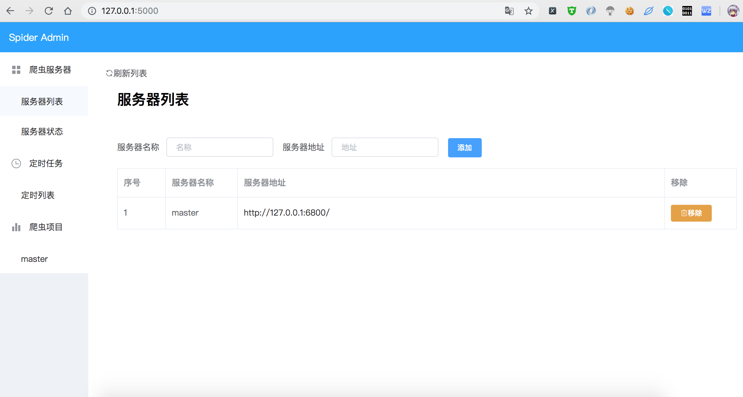 $ spideradmin init # 初始化,可选配置,也可以使用默认配置