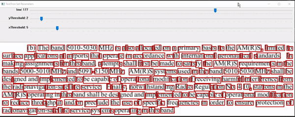 TT = TextTron(img, low=196,high=255,yThreshold=15,xThreshold=2) # Change this till you get good result