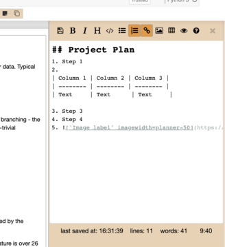 - The Planner includes all of the standard Markdown features, with shortcuts to some of them as buttons at the top.