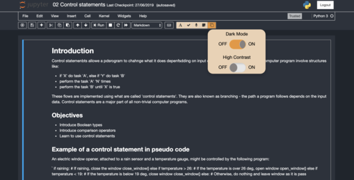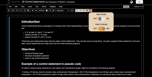 This extension adds a toolbar to your notebook with five separate accessibility tools, focusing on support for users who are dyslexic or visually impaired. These features include the ability to make style changes to the notebook, use predefined themes, carry out some common tasks using voice control, spell check inputted text and plan out one’s work using a planner. This toolbar provides users with the tools necessary to use a Jupyter Notebook to its full potential.