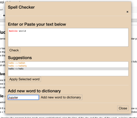 - The aim of this extension is to provide spell checker functionality for all markdown cells in a notebook.