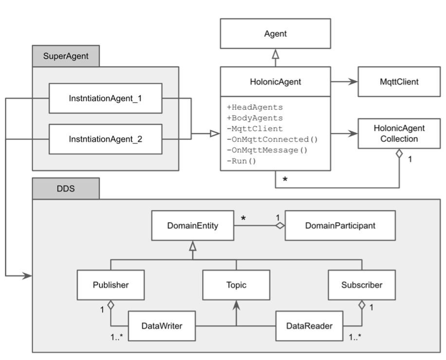 All agents inherit from HolonicAgent to form a hierarchical structure, and they use the DDS to achieve neural message transmission depending on their specific behavior. Each super-agent is a DDS domain that publishes or subscribes to related topics with the required QoS, such as the DEADLINE policy to confirm the date of the data or the TRANSPORT_PRIORITY policy to define the transmission priority order, in order to achieve the purpose of a specific agent.