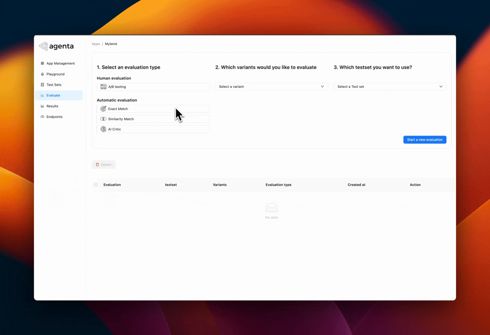 Agenta provides you with the tools to quickly do prompt engineering and 🧪 experiment, ⚖️ evaluate, and :rocket: deploy your LLM apps. All without imposing any restrictions on your choice of framework, library, or model.