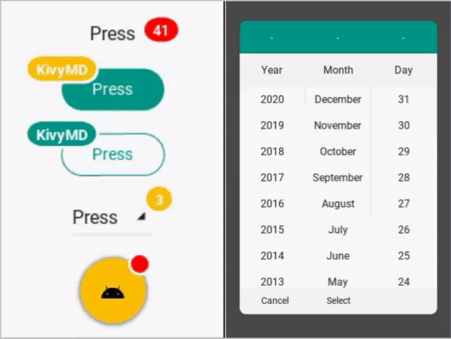Awesome KivyMD is a package containing customized and non-material widgets for KivyMD.