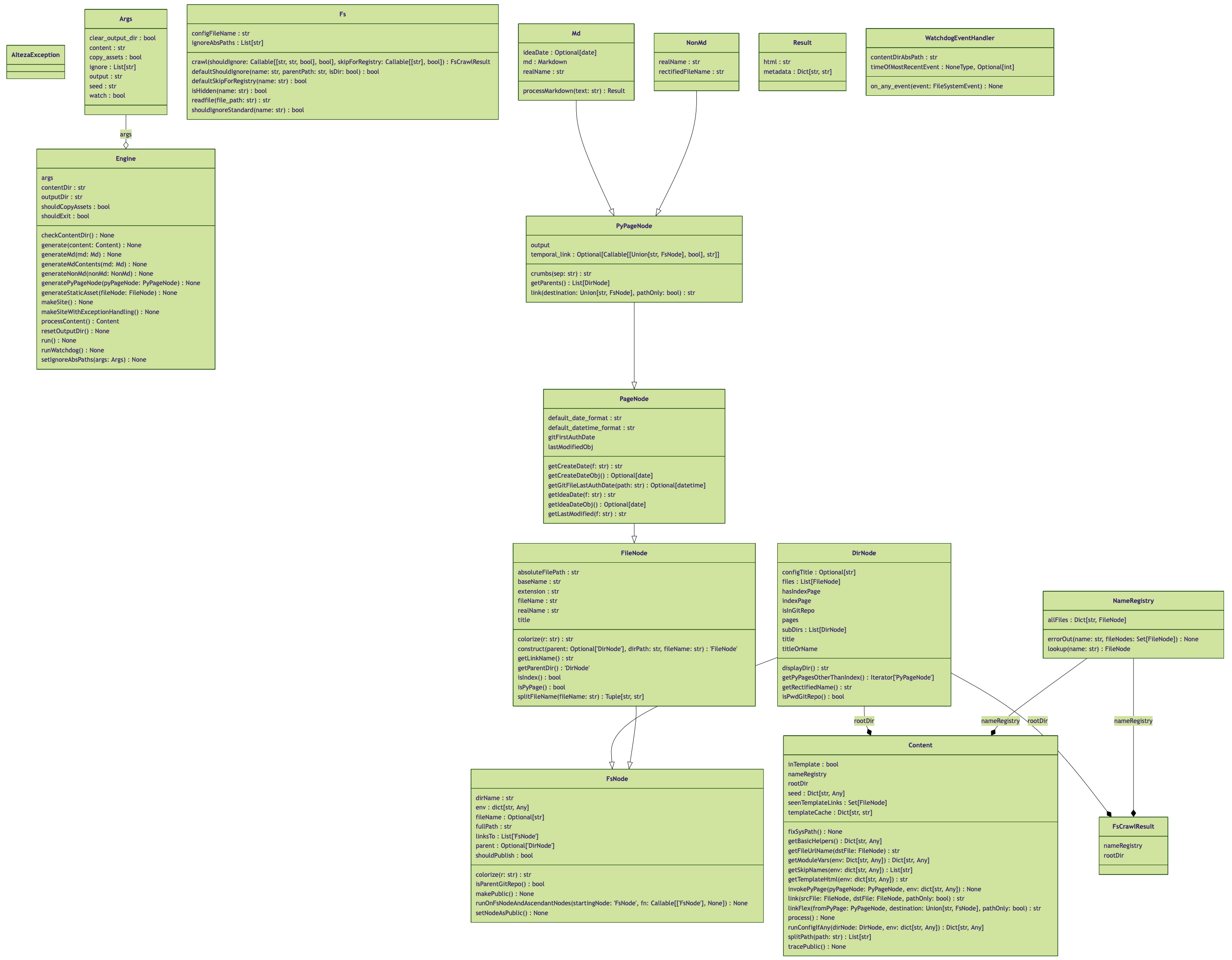 camelCase. Pylint checks for names have mostly been disabled.Here's the Pylint-generated UML diagram of Alteza's code (that's current as of v0.9.4):