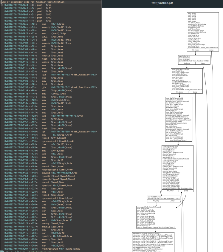 assembly files as control-flow graph (CFG) pdf files. From GDB debugging session
