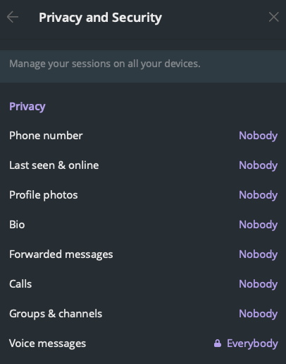 UNDER PRIVACY SETTINGS ON YOUR TELEGRAM CLIENT