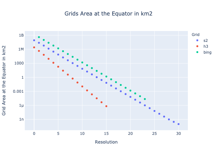 | Area (10^x km2) | H3 | S2 | BING/QuadTree |