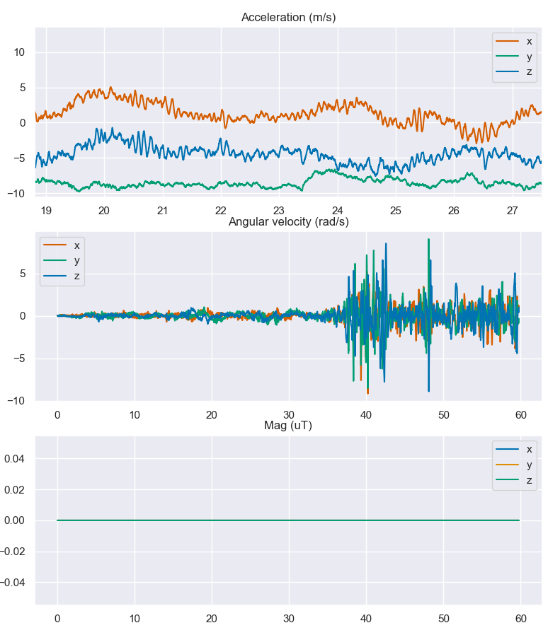 - mag nx3 float magnetometer readings [x, y, z] in tesla