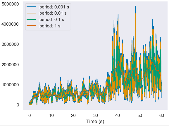 There are two different visualisation concepts. In the 'continuous' concept, a single plot shows all timestamped data for a given container. This might be limited to a certain time range, as defined by kwargs minTime and maxTime. Examples include: