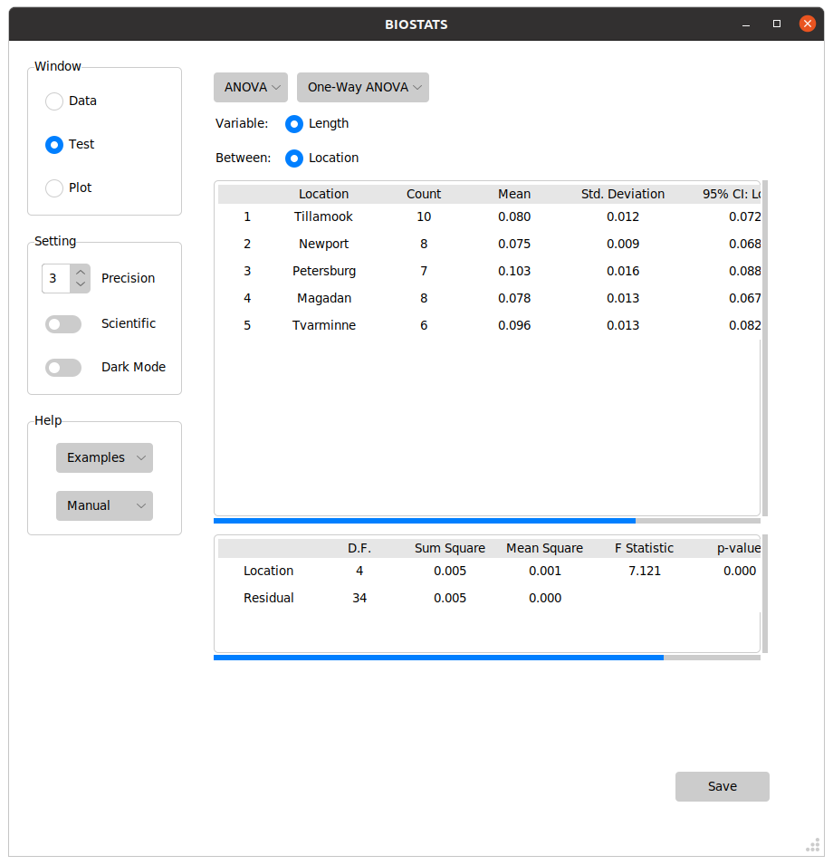 >>> summary, result = bs.one_way_anova(data=data, variable="Length", between="Location")