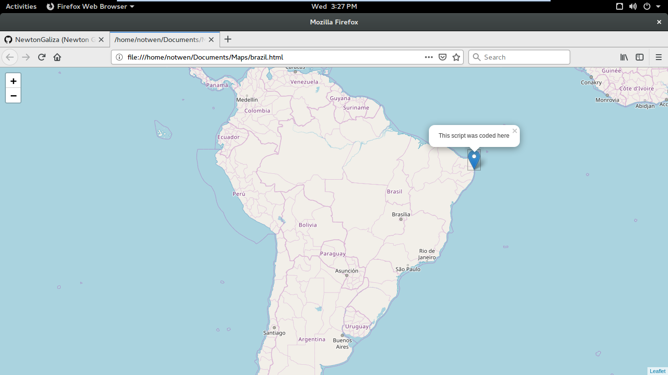 The user enter a latitude and longitude, followed by a filename. And after that the user will see a html page with the filename, when opened the html page show a pin point marked on Brazil map.