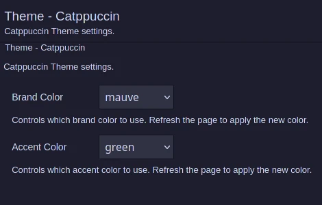 It is possible to choose any of the Catppucin colors as your "brand" color. The default is mauve, but you can choose your favorite to make it your way!