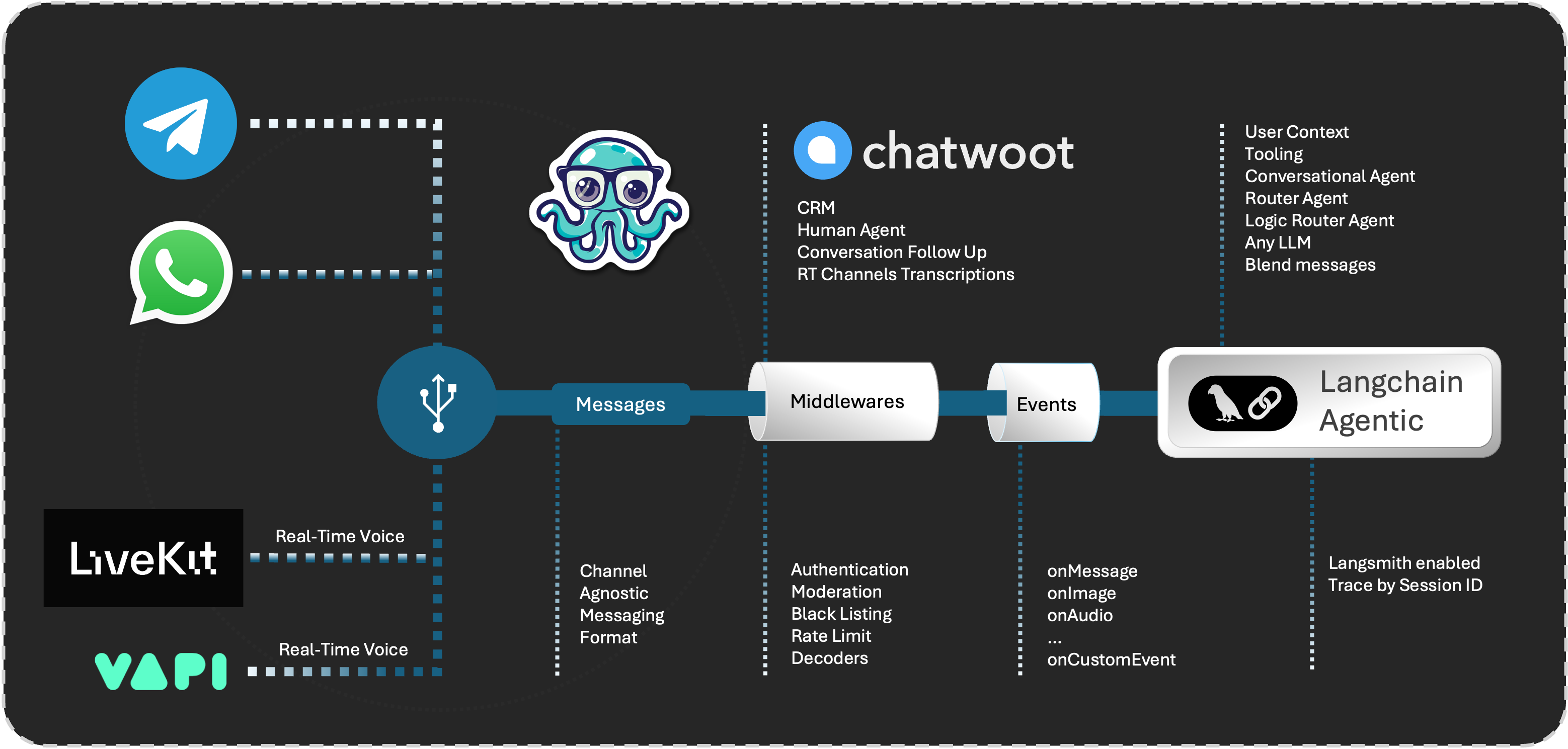 message,image,new_conversation, and more - Powered by Langchain