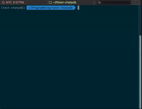 Just like ipdb and pdb, chatpdb supports many different entrypoints.