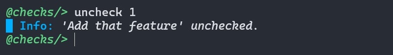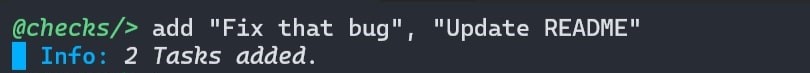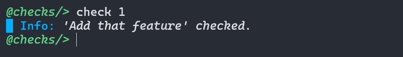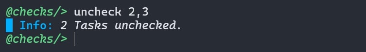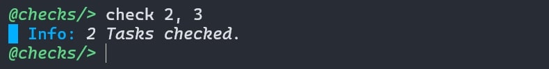 You can check a task (mark it as complete) using check or c command followed by Task ID.