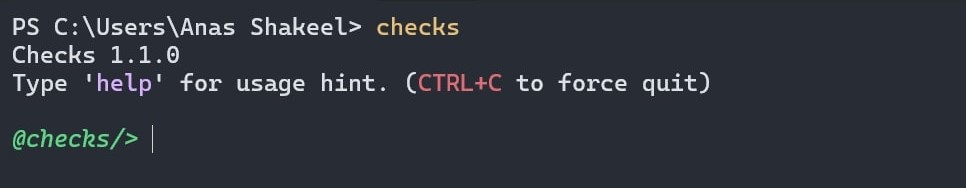 Now you can run commands provided by checks. Run help or h to see available commands.
