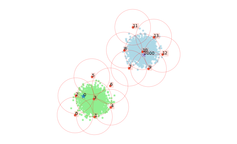 The starting points are marked as the small red boxes. The method also returns a textual summary as follows: