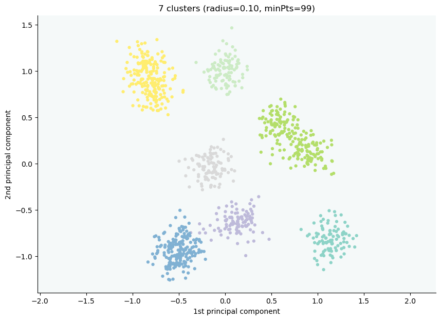 The radius parameter was set to 0.50 and MinPts was set to 0.