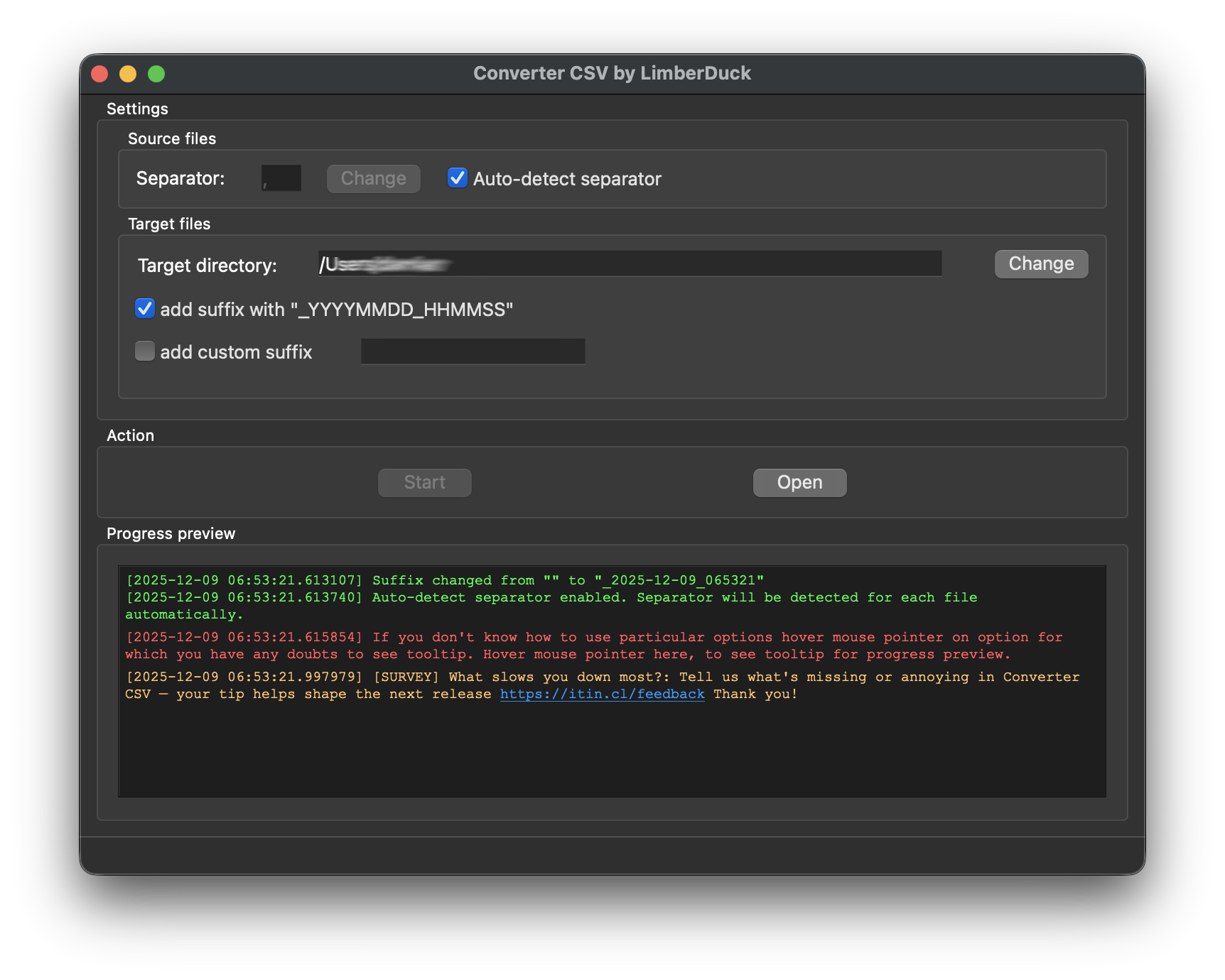 - drag and drop selected directory or directories on Converter CSV by LimberDuck window.