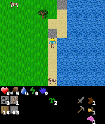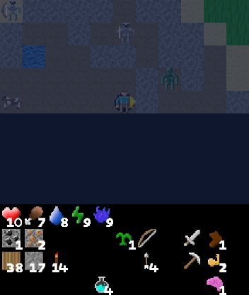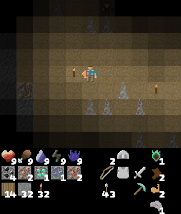 Since Craftax runs entirely in JAX, it will take some time to compile the rendering and step functions - it might take around 30s to render the first frame and then another 20s to take the first action. After this it should be very quick. A tutorial for how to beat the game is present in tutorial.md. The controls are printed out at the beginning of play.