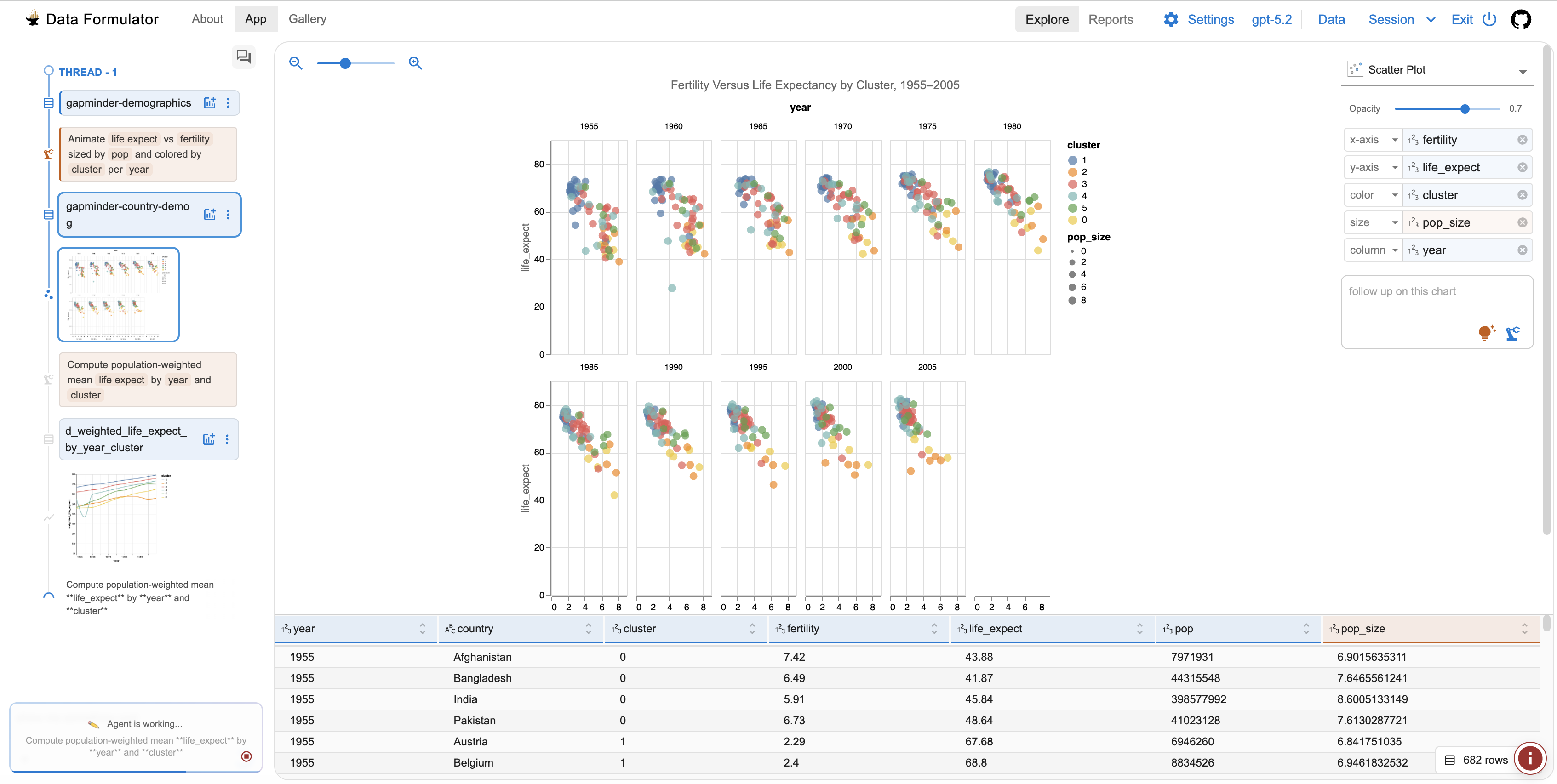 - Level 4 (most vibe): In agent mode, provide a high-level goal and let AI agents automatically plan and explore data in multiple turns. Exploration threads will be created automatically.