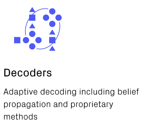 - Decoding & analysis: uses either a standard decoder of choice or Riverlane's proprietary ones to decode measurement samples, apply corrections and produce interpretable relevant metrics.