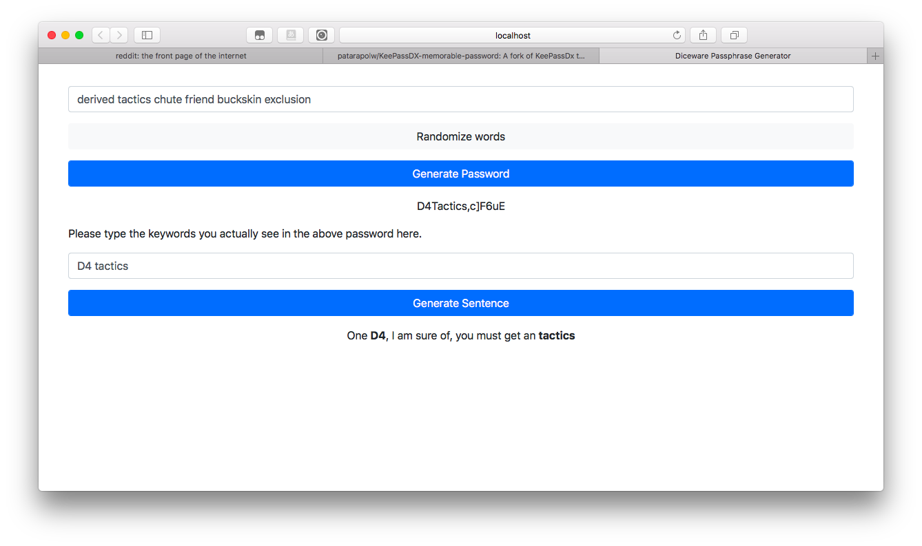 The idea of diceware password is from https://xkcd.com/936/.