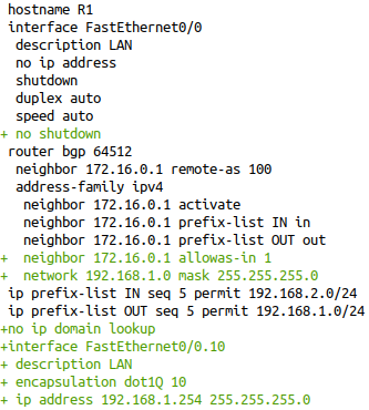 + network 192.168.1.0 mask 255.255.255.0
