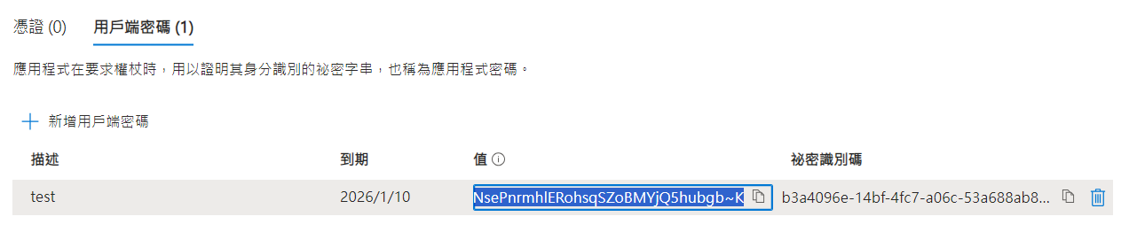 Client SecretfromCertificates & secretspage.