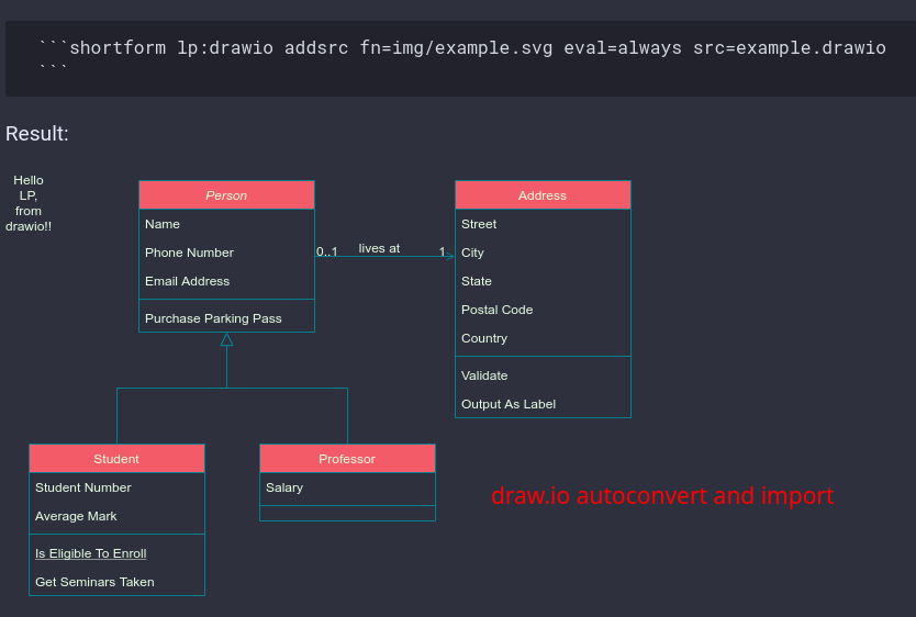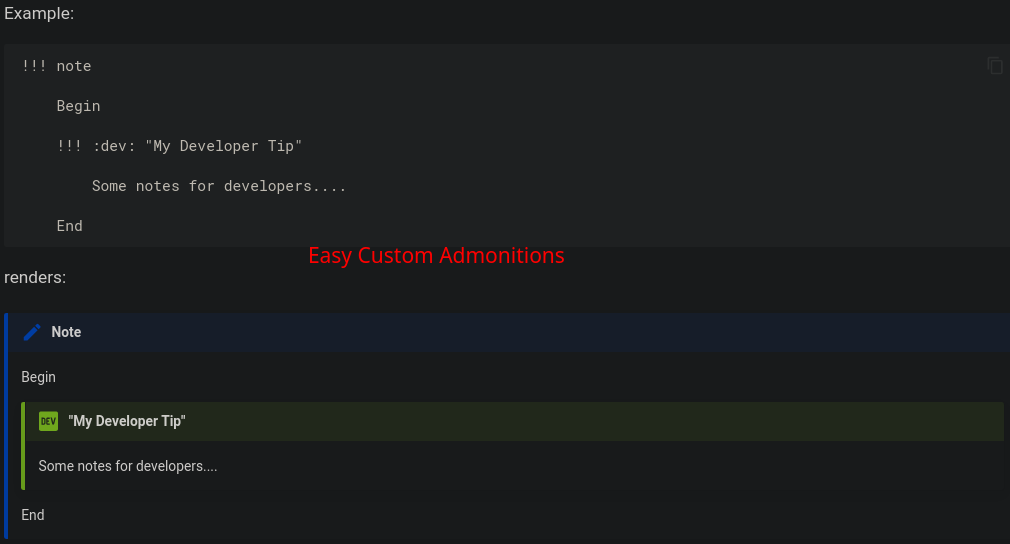 It is meant to be used as a development dependency for projects, intended to be used mainly by the developers themselves, i.e. for the more technical, code centric parts of software project documentation.