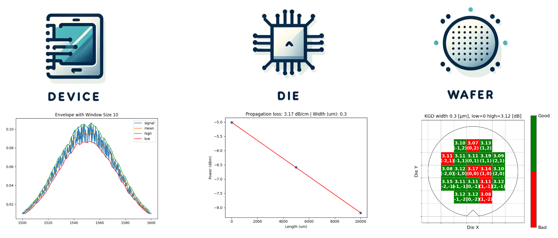 1_generate_layout: generate GDS layout and CSV device manifest with device coordinates, settings and analysis.2_generate_measurement_data: generate CSV measurement data.3_upload_measurements: Upload wafer definitions and measurement data.4_download_data: Download analysis using conditional.5_delete: Delete data.