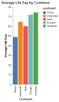 title='Average Life Exp by Continent', x_title= 'Continent', y_title='Average Life Exp')