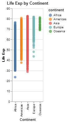 title='Life Exp by Continent', x_title= 'Continent', y_title='Life Exp')